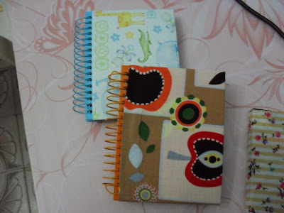 Estos son otros libros forrados con otras telas de patchwork, pero podeis hacerlo con cualquier retal que tengais